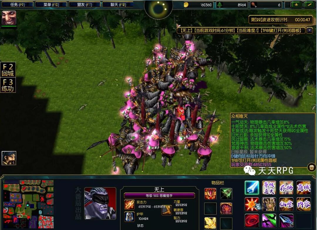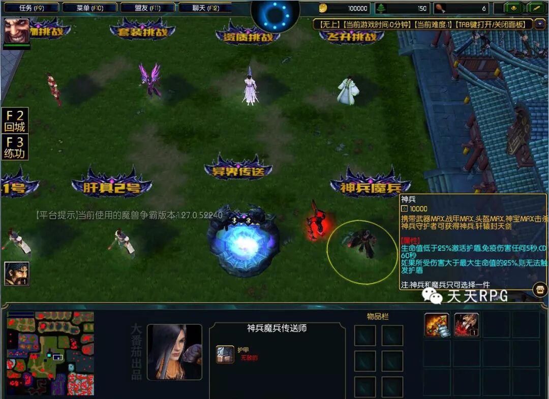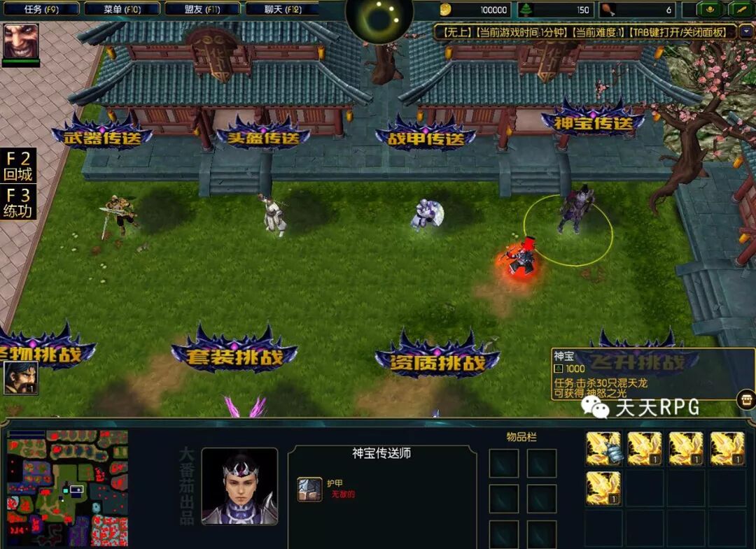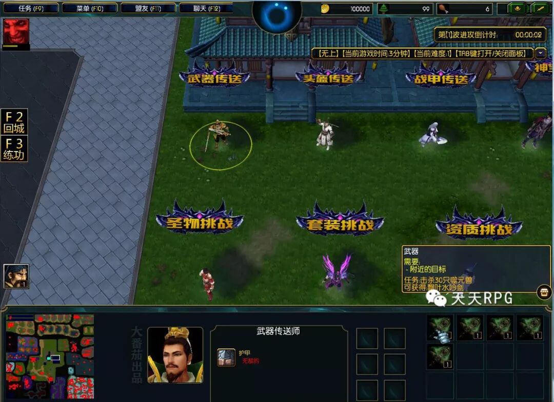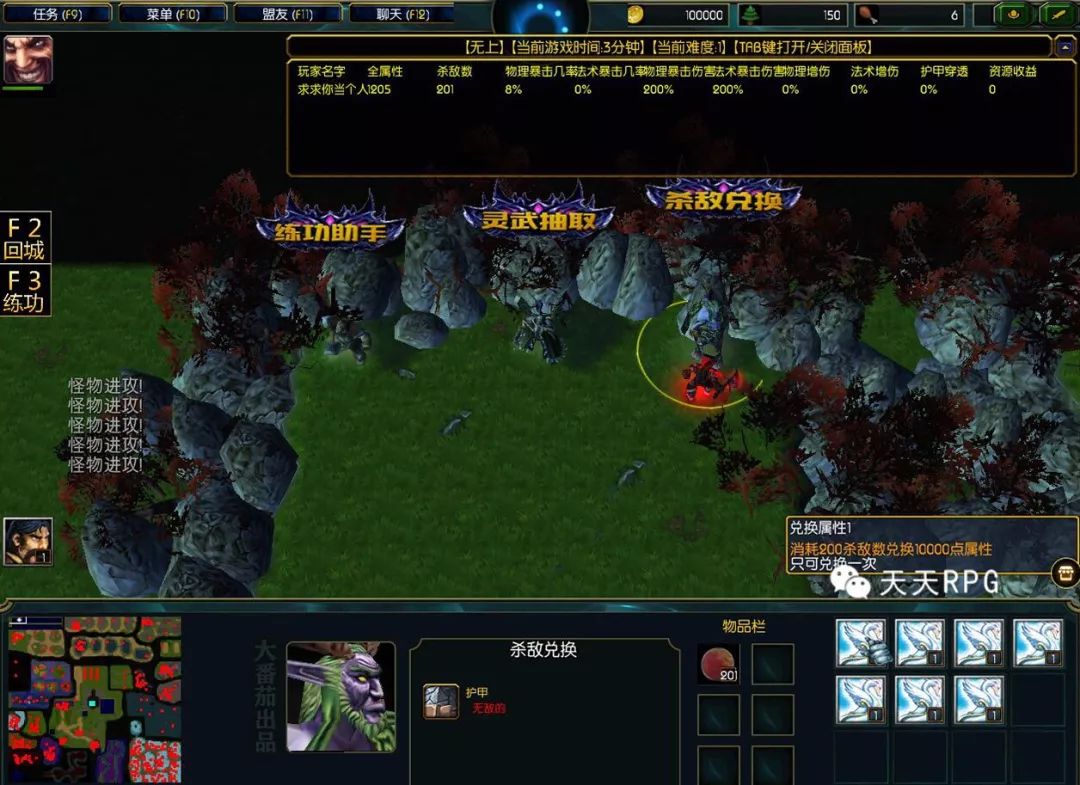 一开始我们输入“支持番茄”跟“天天RPG”可以找上方的NPC领取杀敌加属性的道具还有属性增益。