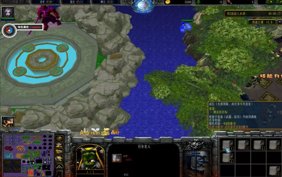 在选取完英雄之后我们将会直接被传送在新手村地点,新手村的新手任务共有三种,其中前两种的装备为固定属性。
