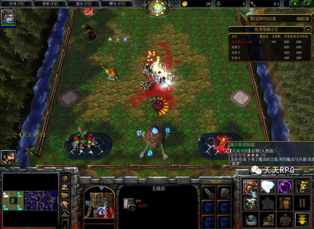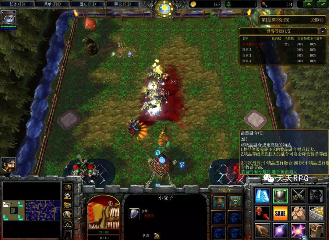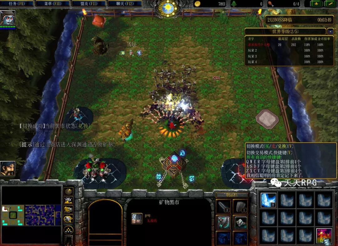 之后差不多进行第一波大BOSS来。右上角查看倒计时。会强制所有玩家传送到中间地图,然后清理五波左右的小怪,接着BOSS就出来了。