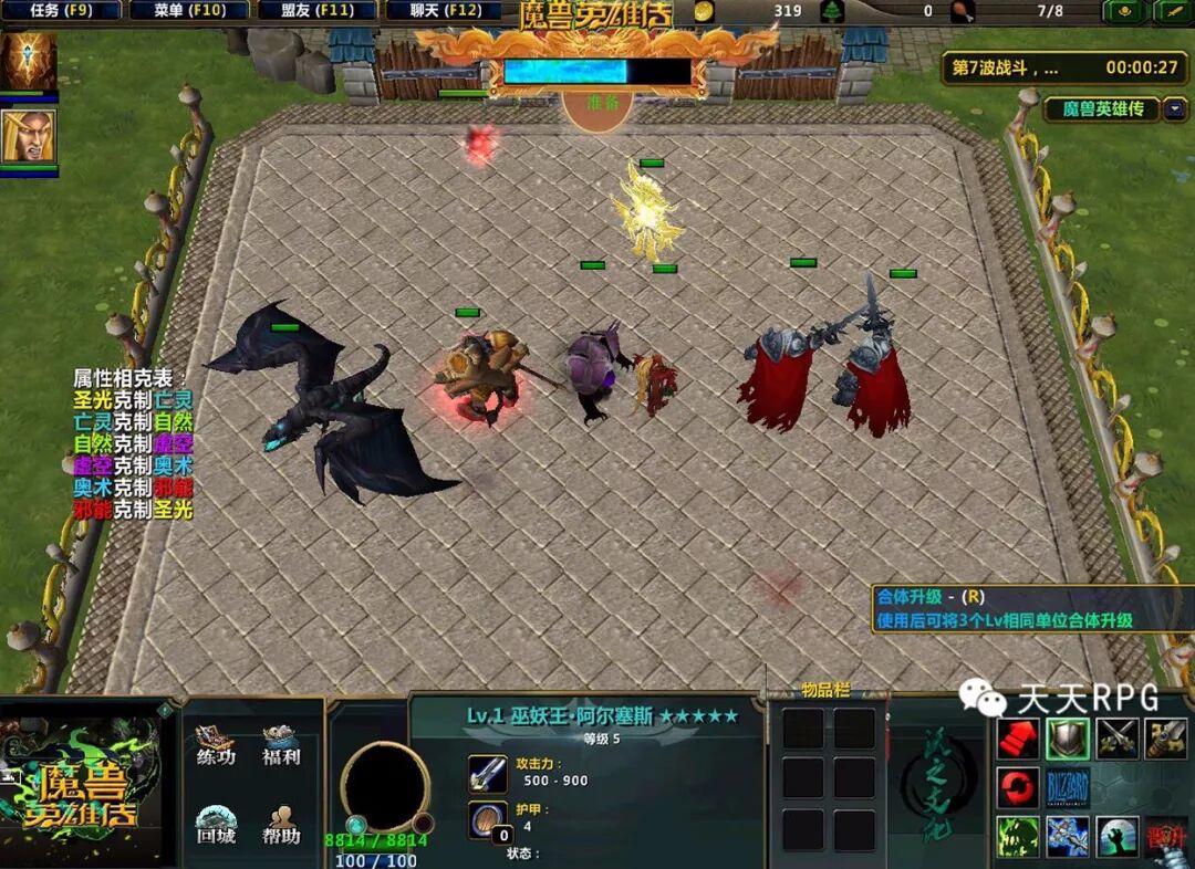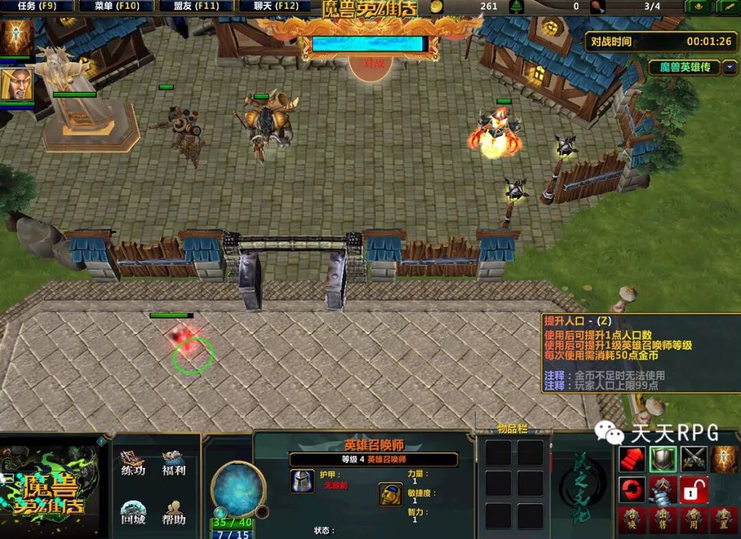 而这张跟《宠物小精灵防守对抗》类型相同的图,当然是有其自己的特点的。比如说人口上限是99点,英雄升级需要合成,并且不会退还人口,而宠物小精灵升级英雄是只需要金币的~
