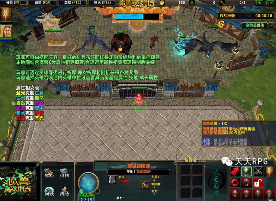 当然,并不是只有输入 –天天开心RPG 才可以更换一组英雄,在我们小精灵的第四个技能可以花20金币来进行更换英雄。而第二技能就是出售已购买英雄。