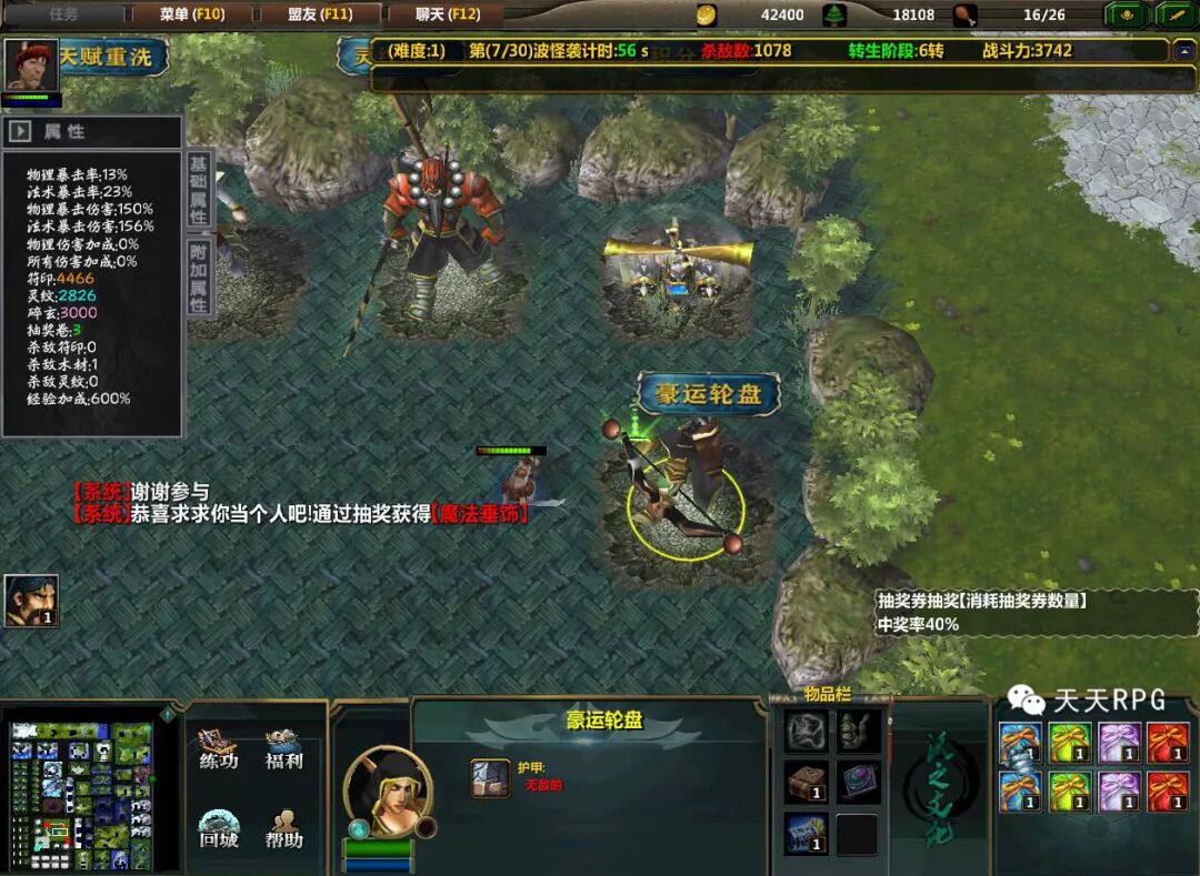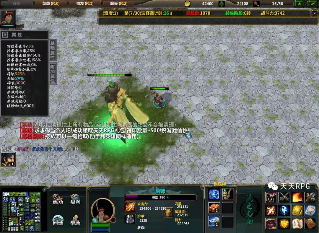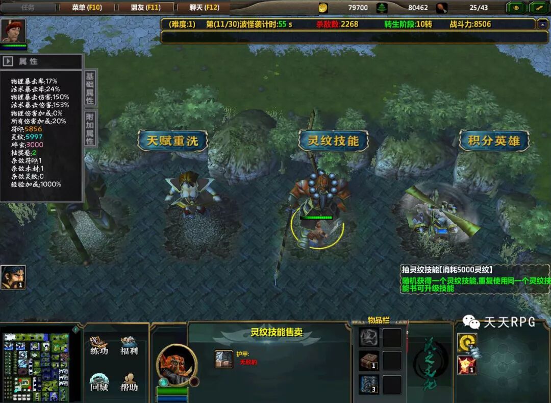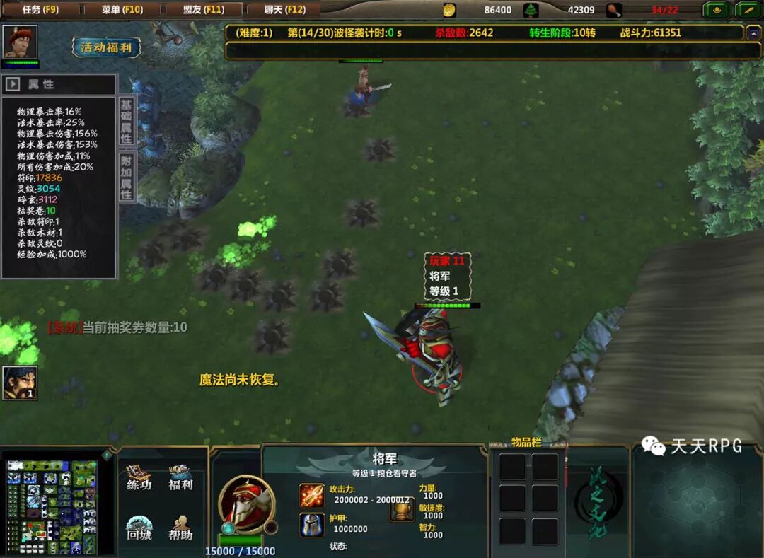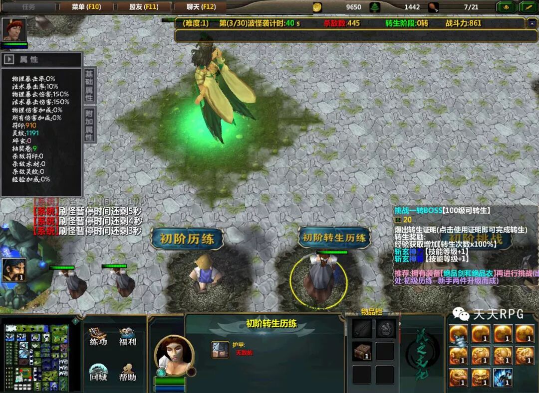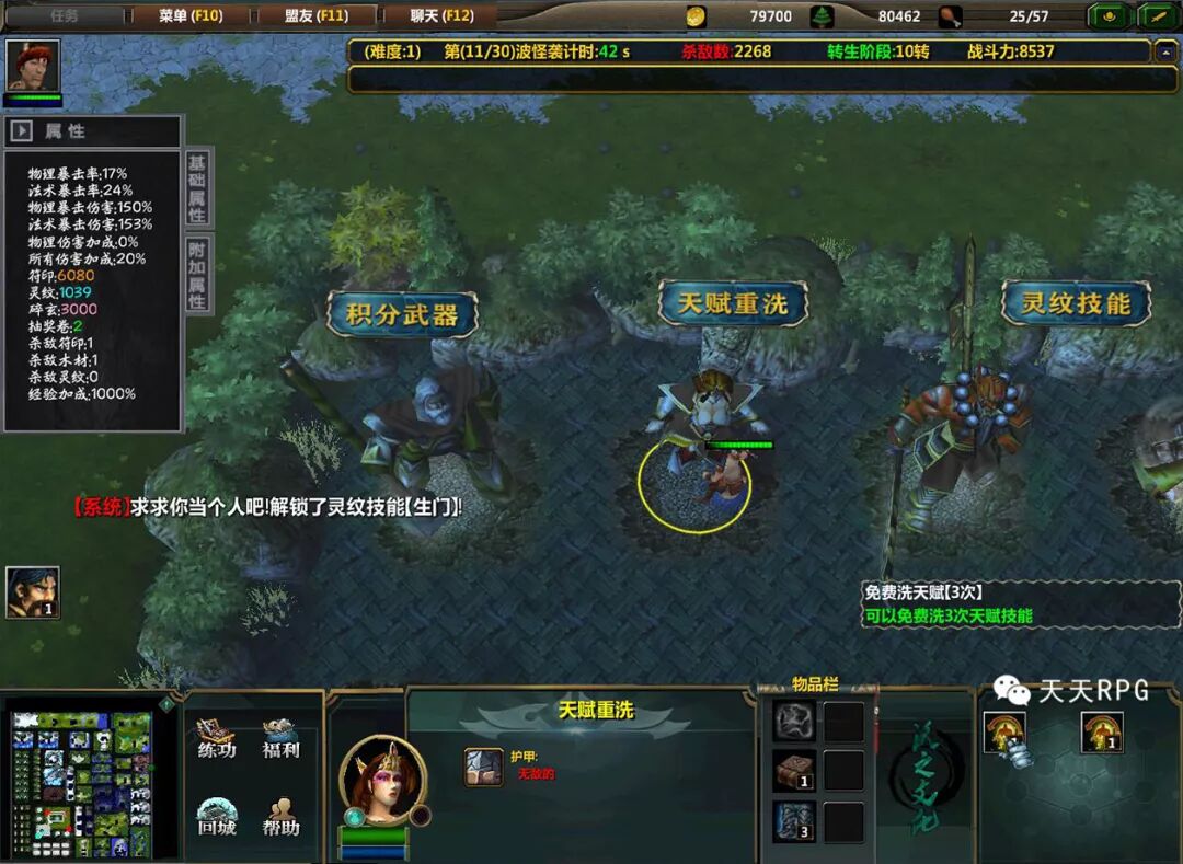 开局后,输入 “天天RPG” 可以获得一些资源符印(杀敌数)。