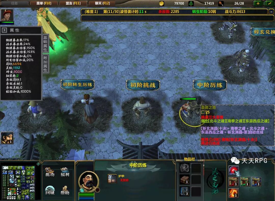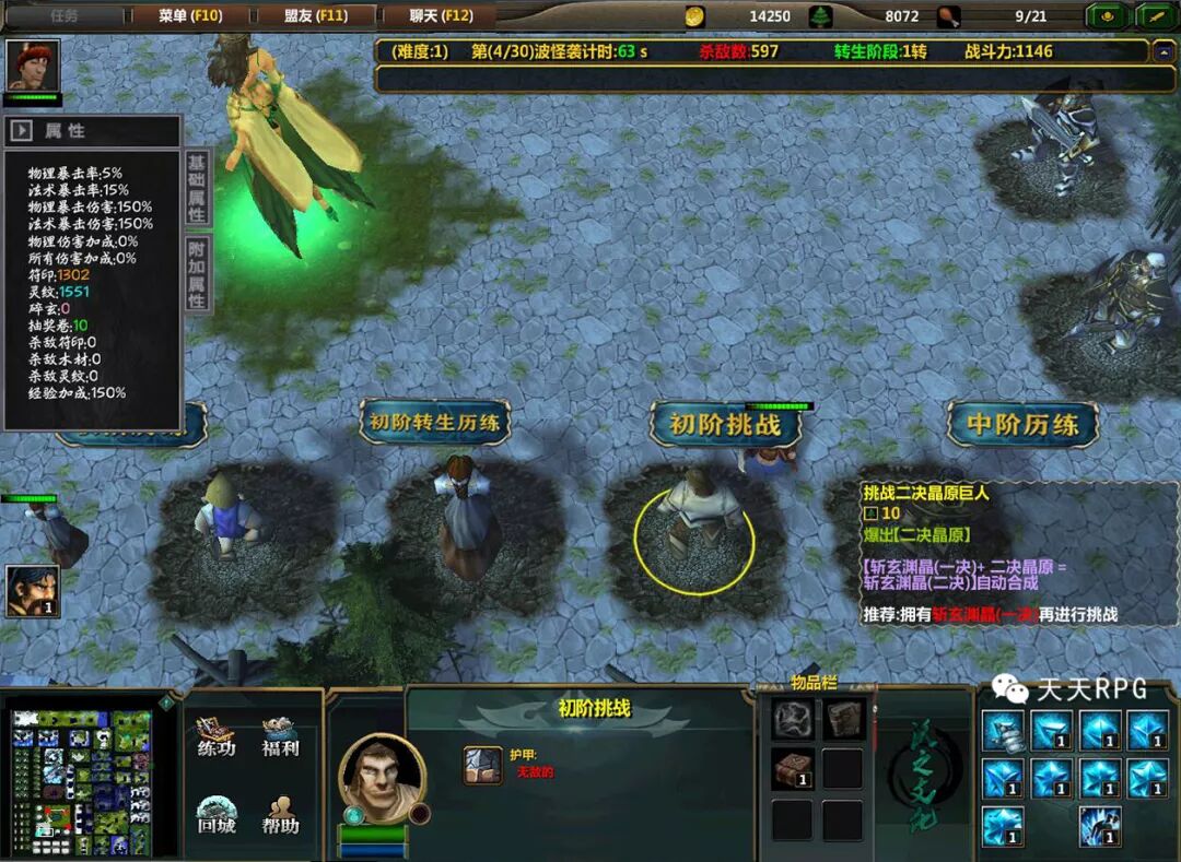 之后我们按推荐打中阶历练。而中间的三个挑战分别是战斗之神(物理)道士(物理跟法术暴击)法神(法术)的。
