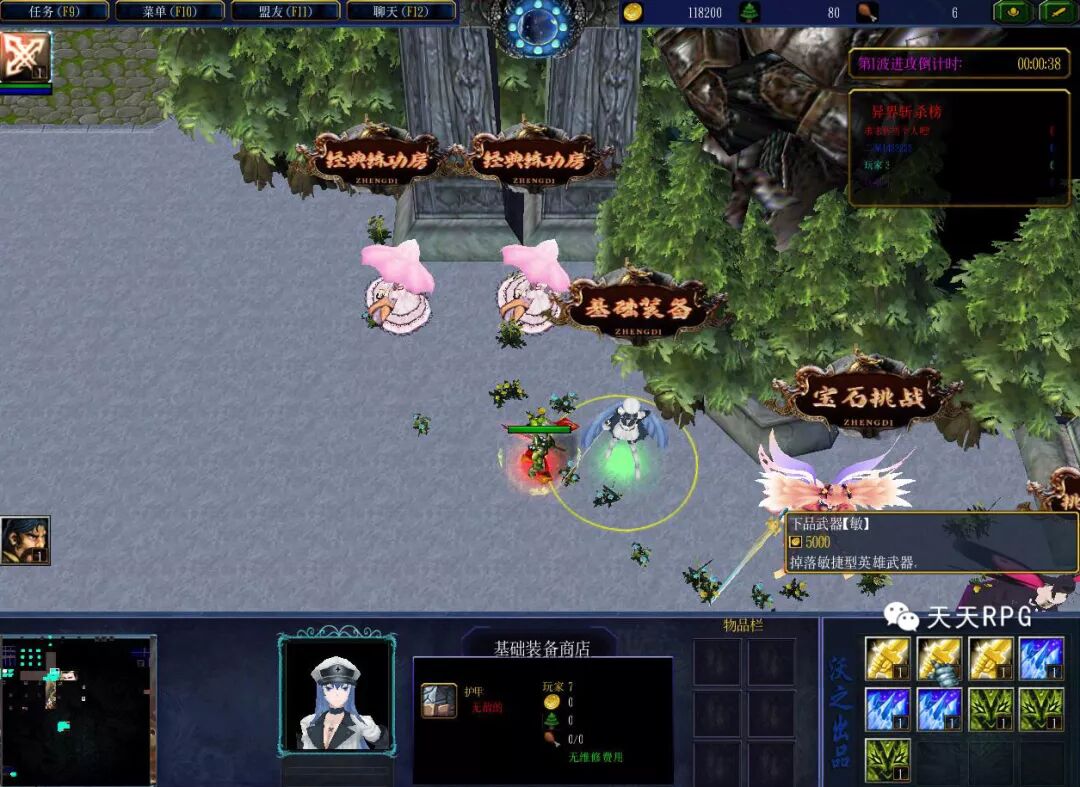 基础五件套打完,就可以去打宝石挑战了。到了上品装备的时候, 就可以刷中木头来升级基地跟停怪了。