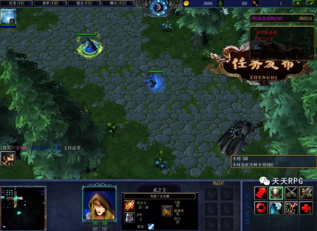开局选好英雄,可以输入“支持证帝”和“天天支持证帝”来获得一些资源。之后找任务NPC接送水任务。