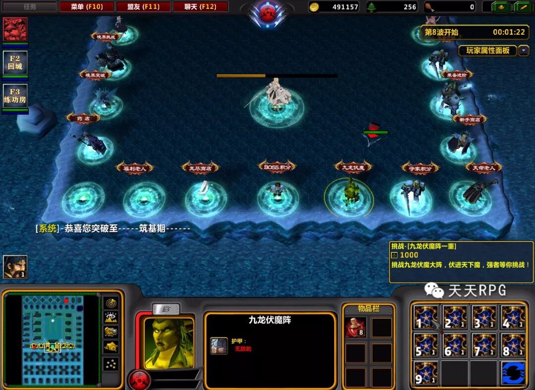 在刷木效率能够大幅度提升的时候,我们需要在流程中加入“九龙伏魔阵”,这项挑战需要消耗大量木头,基本上前期在刷小木的时候不要去打,优先提升装备。