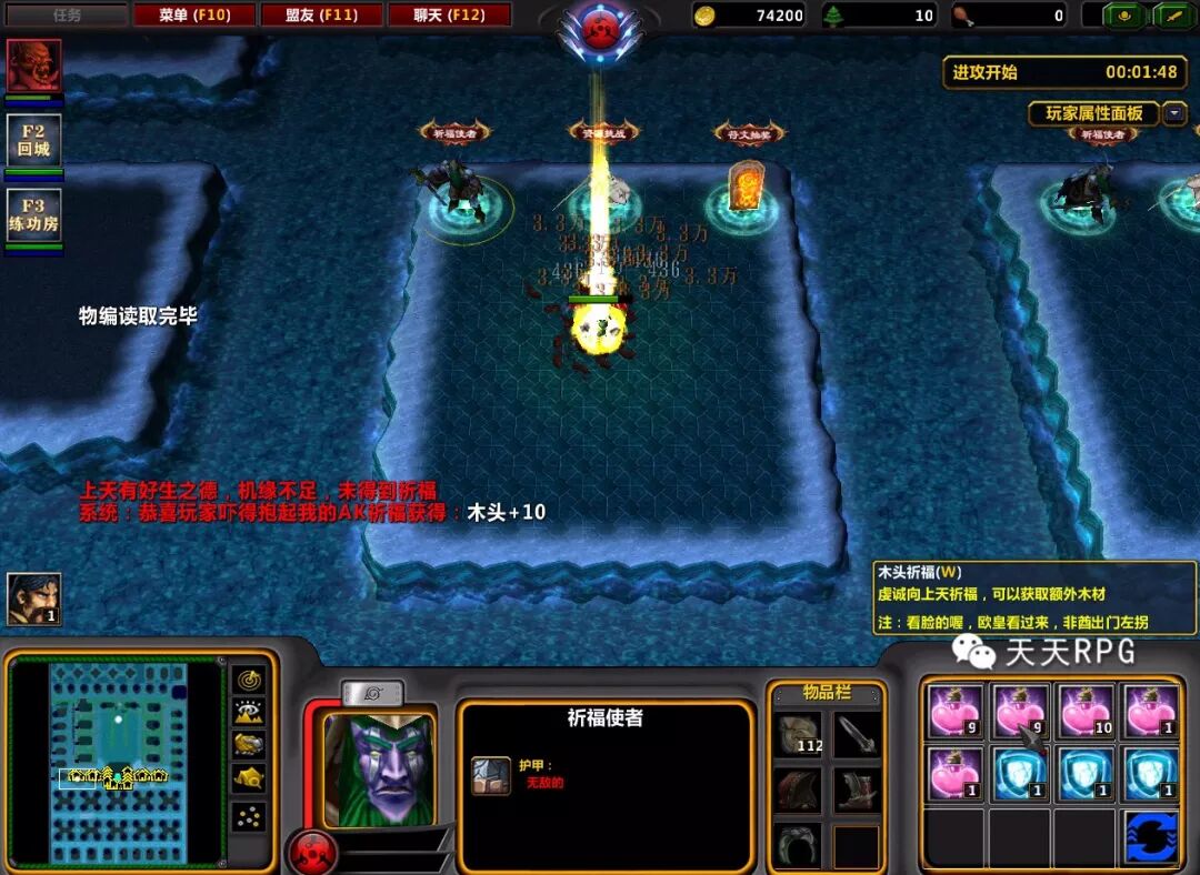 在练功房刷怪的同时,别忘了在“祈福使者”这里进行“属性、金币、木头”的免费抽奖,并且这里的抽奖有CD,基本上CD好了就来抽一抽!