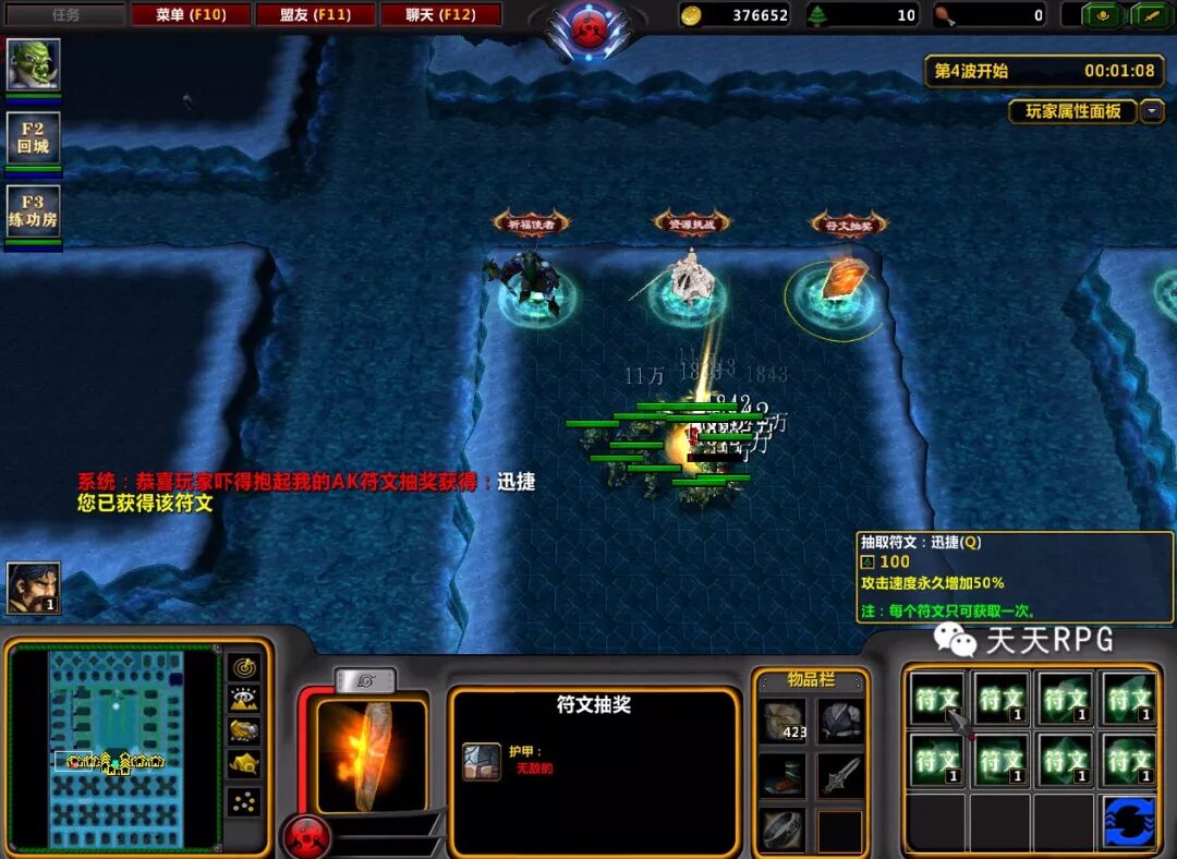 前期我们利用两个命令和抽木头获得的木头可以在“符文抽奖”这里抽取符文,需要注意的是“符文抽取不是必中”,有几率失败,而且失败几率很高。