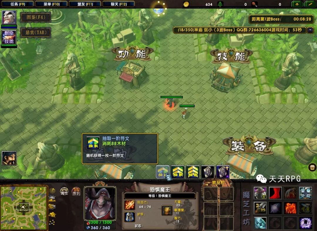 符文获取方式有两种,一是击杀前来进攻的进攻BOSS,二是花费木头直接抽取。