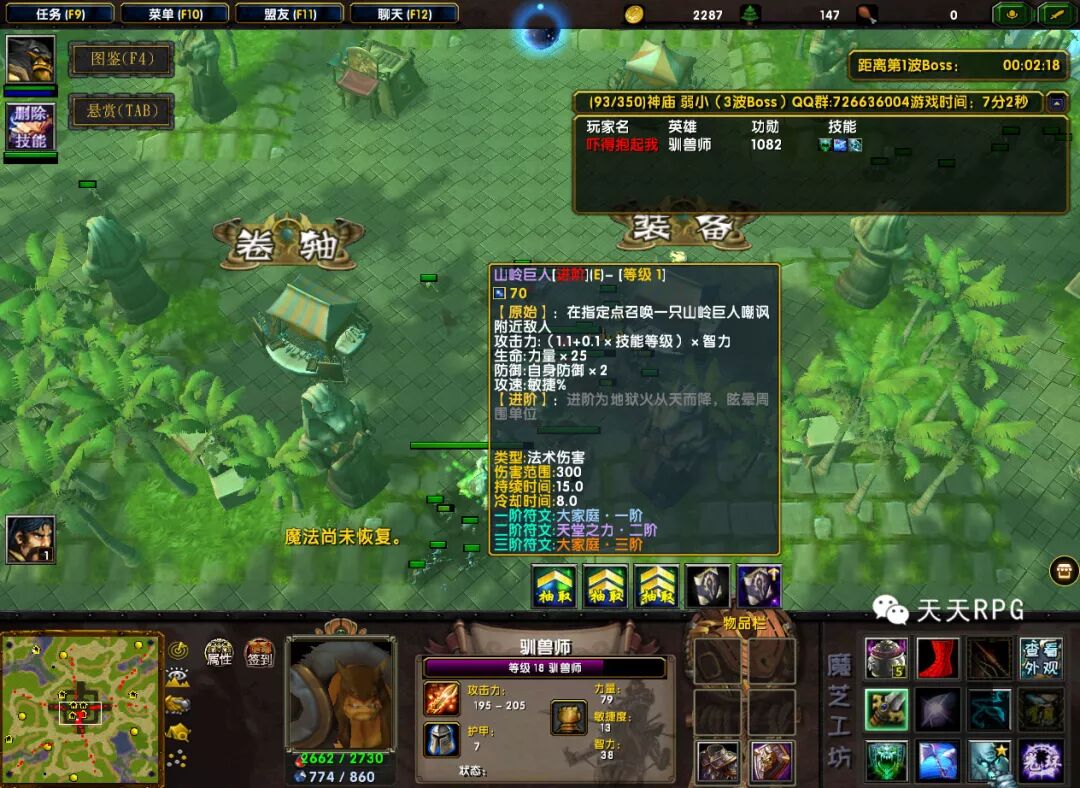 接着就是抽符文,升级技能,光环技能选择护甲光环,也就是走纯肉反伤路线,唯有这种路线才能扛得住进攻BOSS技能伤害。