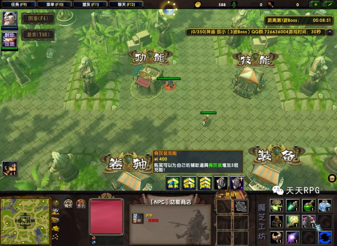 我们在击杀进攻怪的时候,有几率会掉落各种“技能书”,人物最多可以拥有3个技能+1个光环技能。。