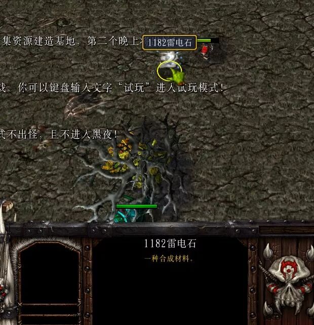 从左到右依次为石头,水晶,木材,金矿。除了基本资源,整个地图上还游荡着各种野怪,而每种野怪都会掉落不同的野外资源。