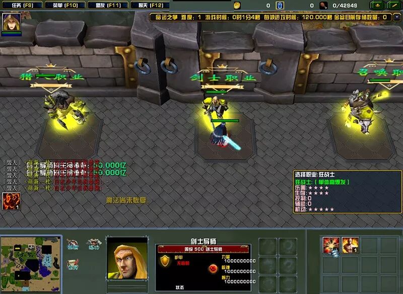 开局之后我们会首先传送到一个选择职业的地方,这里每个职业导师处都有两个不同的职业,比如战士就有狂战士和圣骑士两种,狂战士就是纯粹的输出而圣骑士则就比较像一个奶妈。多人去玩的话,多种职业的配合肯定可以让我们事半功倍。