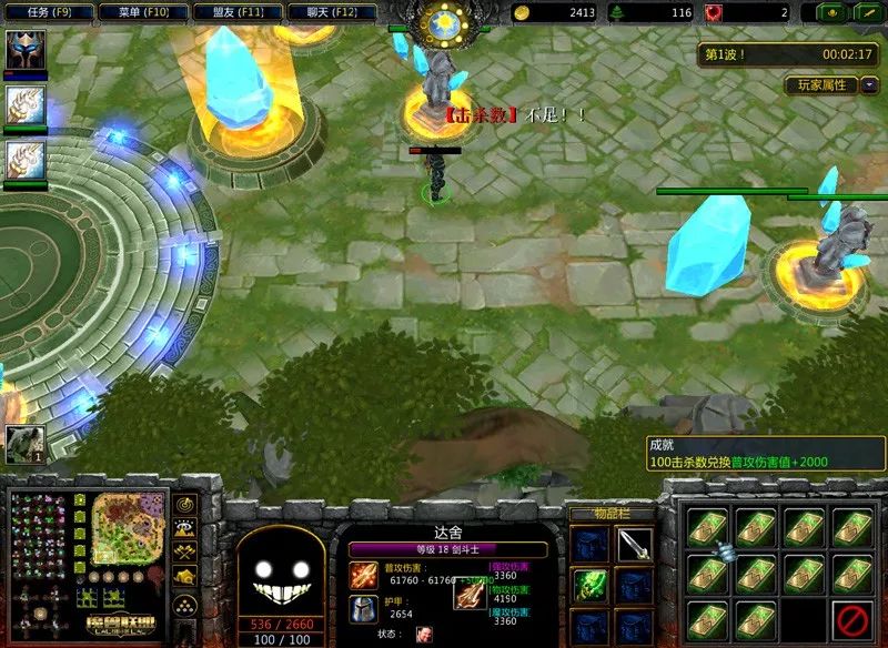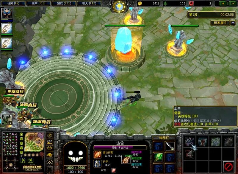 带着这种惊讶,小鸡又仔细的看了一下这张图的内容,结果越看越觉得不简单,这竟然是一张把MOBA玩法和防守融合在一起的地图,作者简直是一个鬼才。传统的防守图玩法,像是打装备,学技能,练功房等等这张图全有,然而这张图的胜利条件却是MOBA的胜利条件,即推倒对面的水晶!