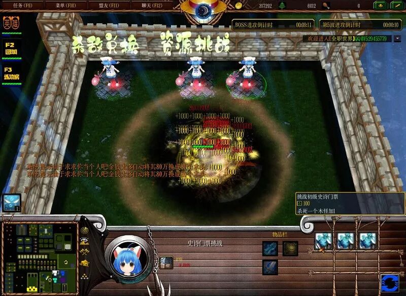 练功房里还有个史诗级门票的挑战。击杀获得门票点,用于去史诗副本。并且击杀还能给木头~但是不给经验哦。