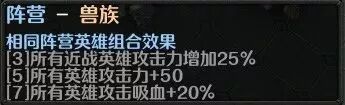 先看兽人,所有近战单位攻击力增加25%,所有单位攻击力增加50,所有英雄增加20%攻击回血。