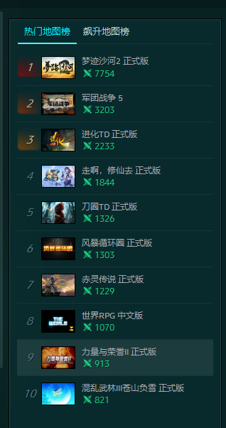 排行榜是一个修罗场,所有上了榜的地图到了这里都会接受玩家的考验,不好玩的,玩一局扔掉,好玩的,呼朋唤友,口口相传。