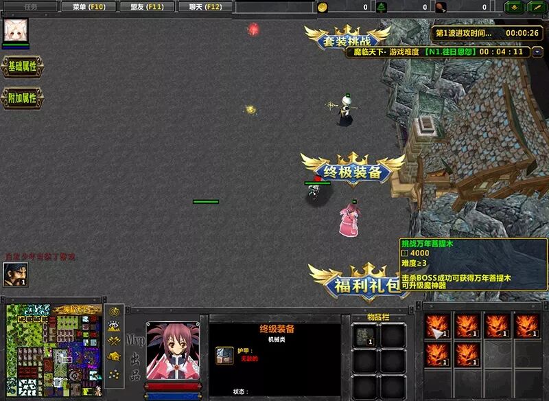做完这些之后就可以挂一挂练功房,刷一刷木头怪,抽一抽奖,说不定就能抽到什么稀有神器。最后就可以安心的等boss上门了(大佬也可以在基地提前召唤)