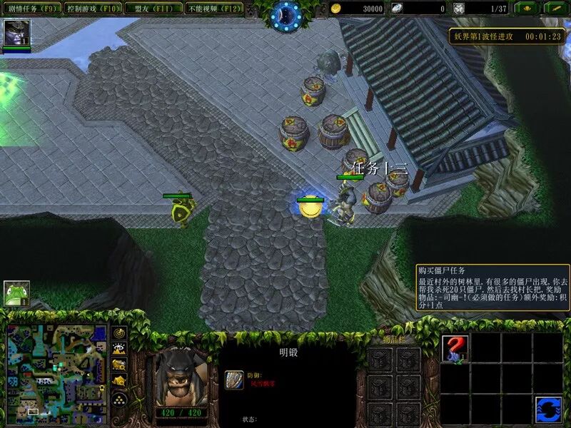 OK然后我们回来清一下月牙村的任务,拯救一下月牙村民们。 首先来到月牙村村口下面这里有个叫做明锻(命短?)的NPC,在这里接取任务然后把这个任务一做拿到道具司幽。