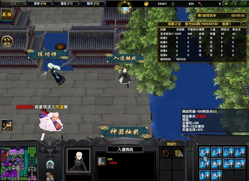 上述做完之后,修炼挑战差不多也可以打了。每秒加属性什么的,可以早点打。并且修炼挑战会关乎我们后续的入道挑战。