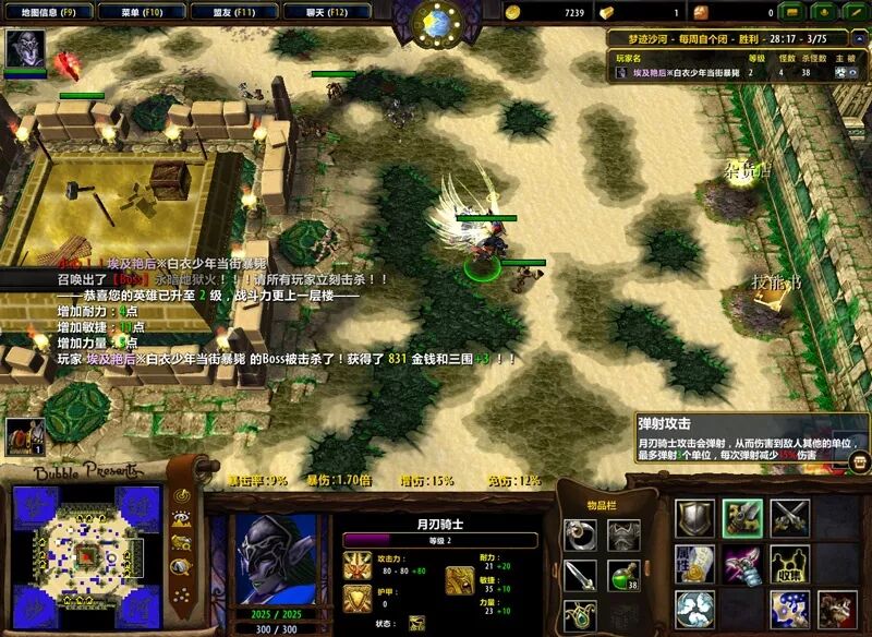第二次小鸡玩的时候随机到了月骑,虽然攻速慢,但是弹射的清怪效率也足以让我在角落里疯狂输出。
