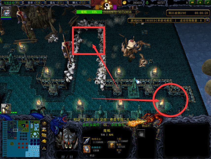 接下来这个地方有两个隐藏BOSS,方框内是无常,掉落无极石,圆圈内是一个隐藏传送门,进入后往泉水处走触发隐藏BOSS魔蝎,击杀后掉落劫难。