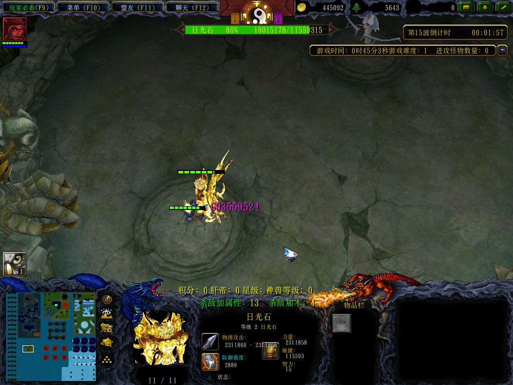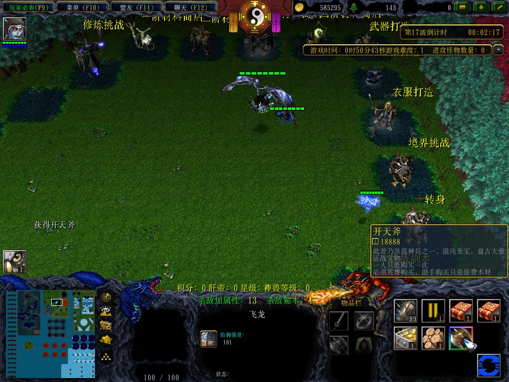 然后我们再把武器装备升级升级,大概打到三阶段这里就开始攒钱,这个时候打大木也是没什么压力了,我们攒钱打到18888木在龙种哪里购买一把神器开天斧。