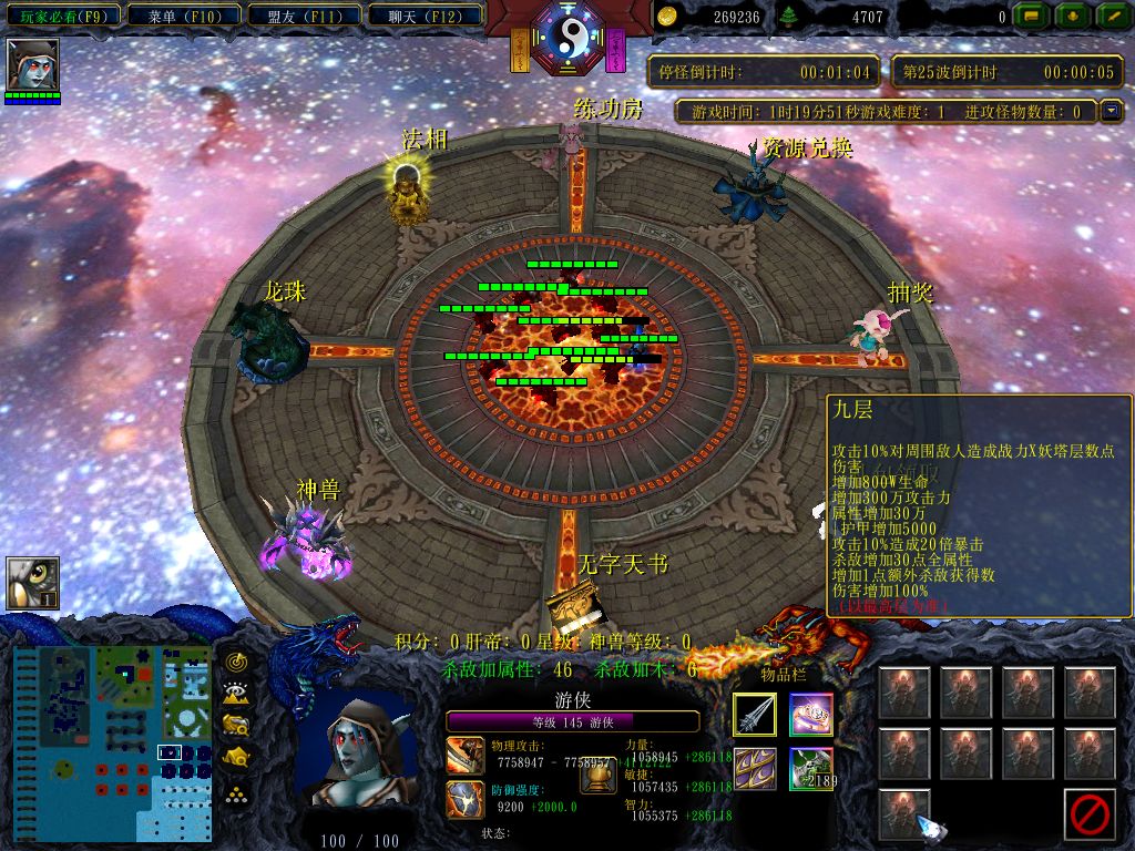 一把直接把这个锁妖塔肝完,如果时间不够记得暂停出怪。(锁妖塔在一阶装备材料的隔壁,修炼挑战处第一个,第二个魂魄之主太废杀敌数,小鸡也是没有怎么打,因为还有个神器需要喂,嘤嘤嘤)