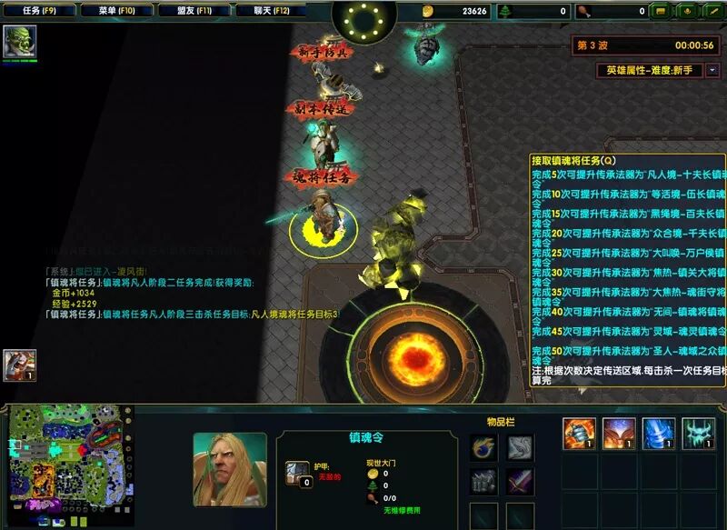 前面小鸡强大以镇魂任务为主,并非是没有理由的。因为后续解锁称号的镇魂将的时候,我们可以接解锁R技能的任务的。而此任务小鸡细说下:孟婆是在最后一个副本里,然后接最后一个的任务,击败阴阳二魂然后去四圣兽那个副本,击杀中间合成NPC旁边的中立单位(你A它就行),三个物品到手后,找中间NPC合成即可解锁。