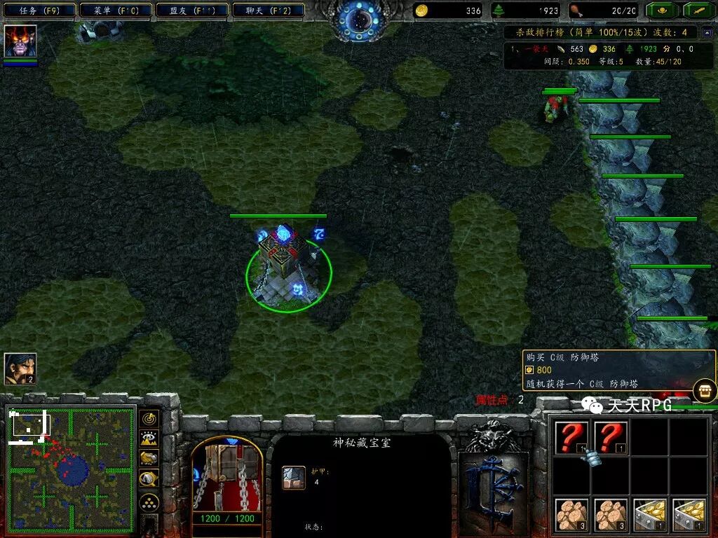 这时候,第一波僵尸应该已经抵达战场了,正常情况下,这些怪会被防御塔和英雄吸引住,在树林外面徘徊,偶尔会有几只去打城墙,我们只需要造几个苦工负责修理城墙就行了。