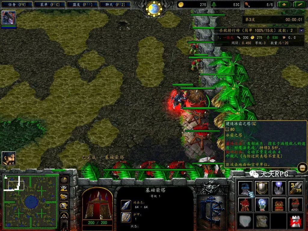 科技提升一定程度后,我们可以适当的升级基础塔,基础塔可以升级减速的冰霜塔,范围攻击的巨石塔等等。