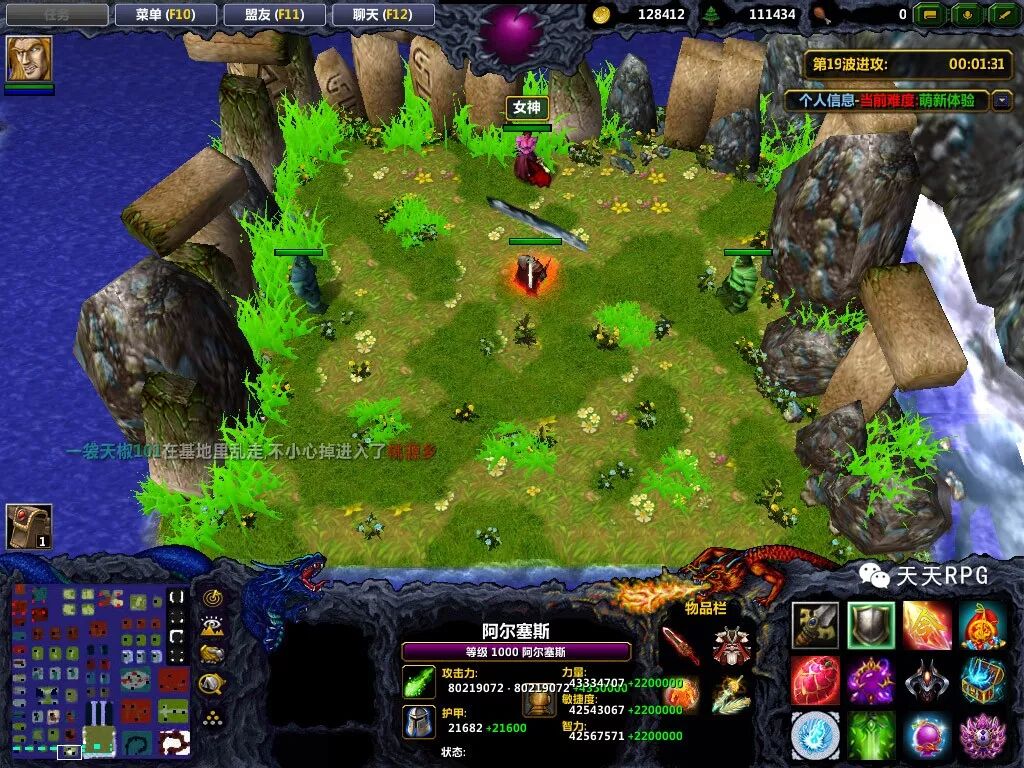 选择英雄方面,依旧有我们熟悉的剑圣,但是,竟然不让选???小鸡还是第一次遇到初始英雄里不让选剑圣的地图,于是就选用了阿尔萨斯开始了我们的萌新之旅。