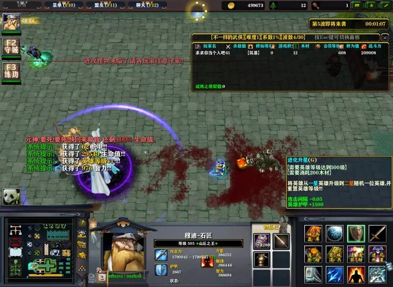 接着就是此图的重点了:升星。此升星需要英雄达到一定的级别后,并且有足够的木头才可以的。而升星成功后,除了第二个技能(随机的),其他技能都会改变,并且升星后英雄也是随机的哦。
