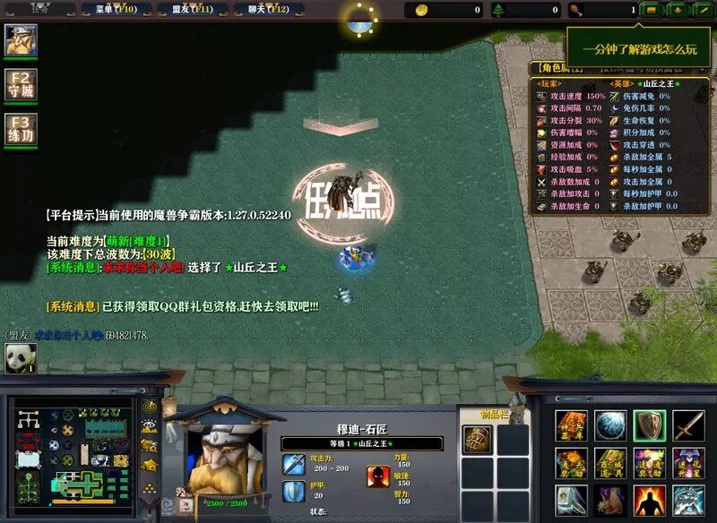 此图开局是随机英雄的,接着我们输入礼包码找NPC领取礼包,接着把两个任务做了,获得两件装备。