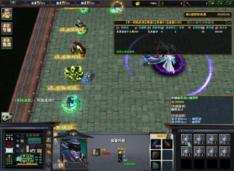在装备通过上述材料升级一级后。我们可以回去练功房尝试下打属性挑战。第一次是免费的,而后续需要一定木头数量乘以次数的。