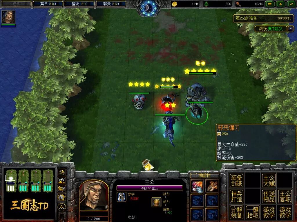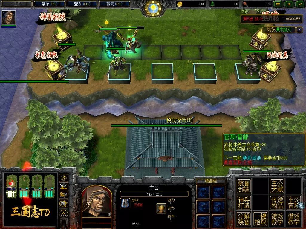 在这张图中,每个武将不只是自带天赋技能,还可以学习4种武艺,武艺与天赋的搭配,往往能碰撞出绚烂的火花。并且通过升星进行升级和统领士兵,强度将不设上限。爆出的装备,通过合成将能够打造专属神兵,这在TD图里可是很罕见的,毕竟TD图主要的特色就是有非常多的防御塔。