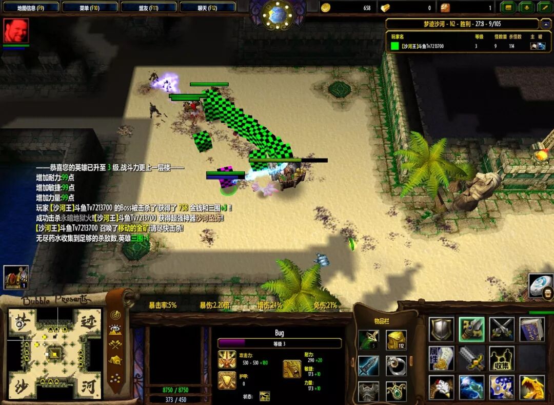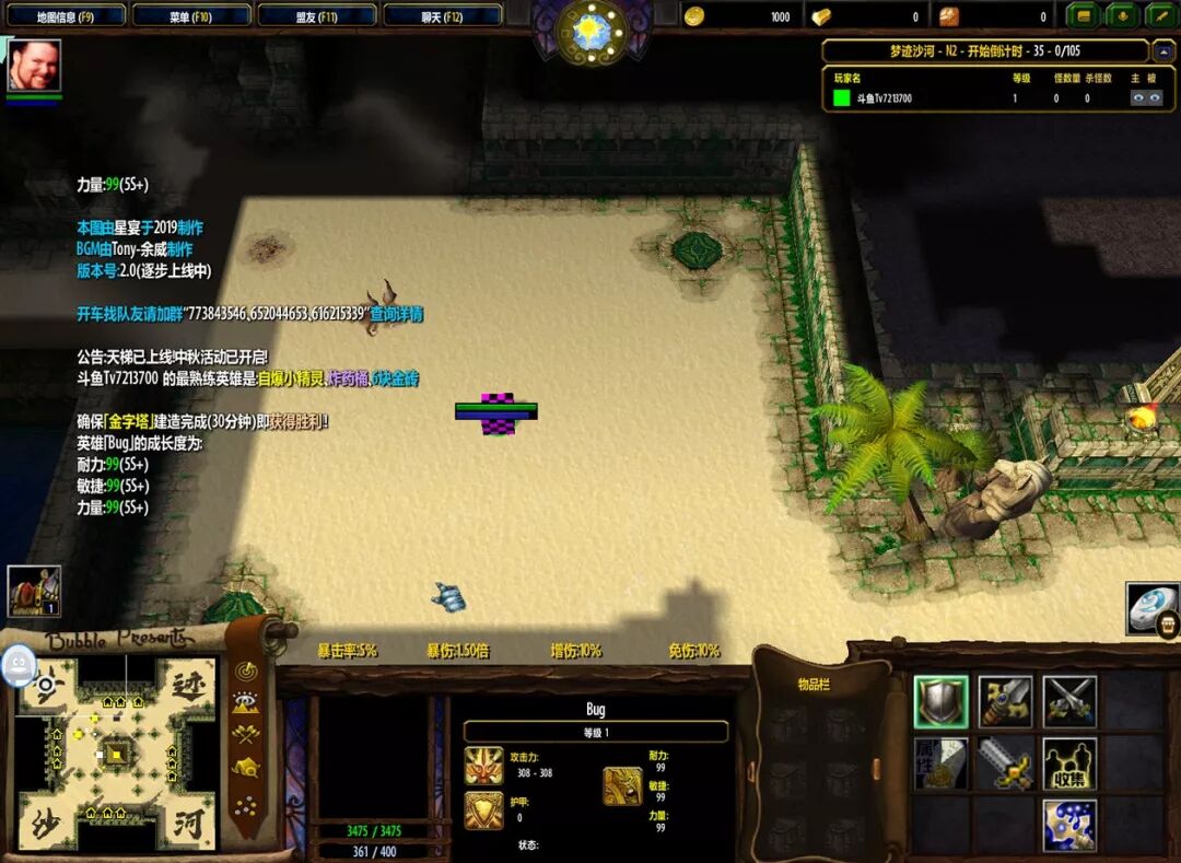 BUG的初始属性为99这代表什么?代表你天梯模式只要操作不是太烂开局一分钟只要有精英怪就可以起手招地狱火!运用好你的F2(回城)+C(传送到两侧的塔)随便配个D级主动就可以轻松搞定。
