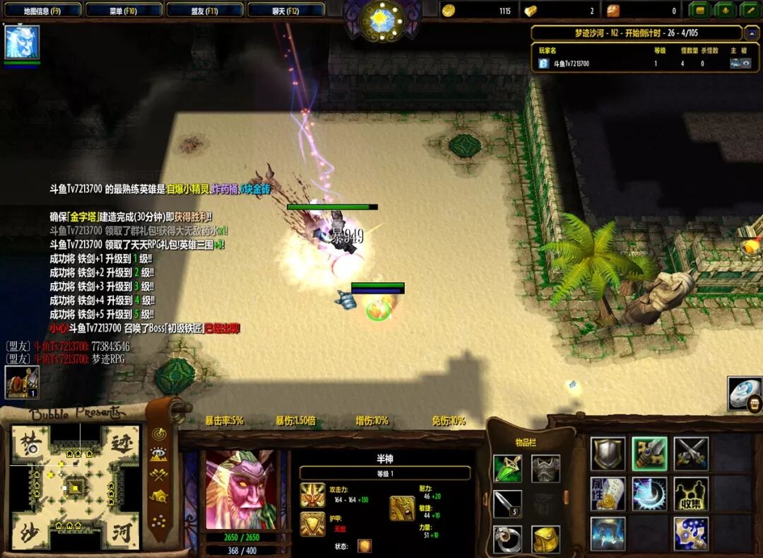 大家可能有疑惑他没点金没啥用。半神真正好用的时候是在刷BOSS,地狱火,金矿的时候。