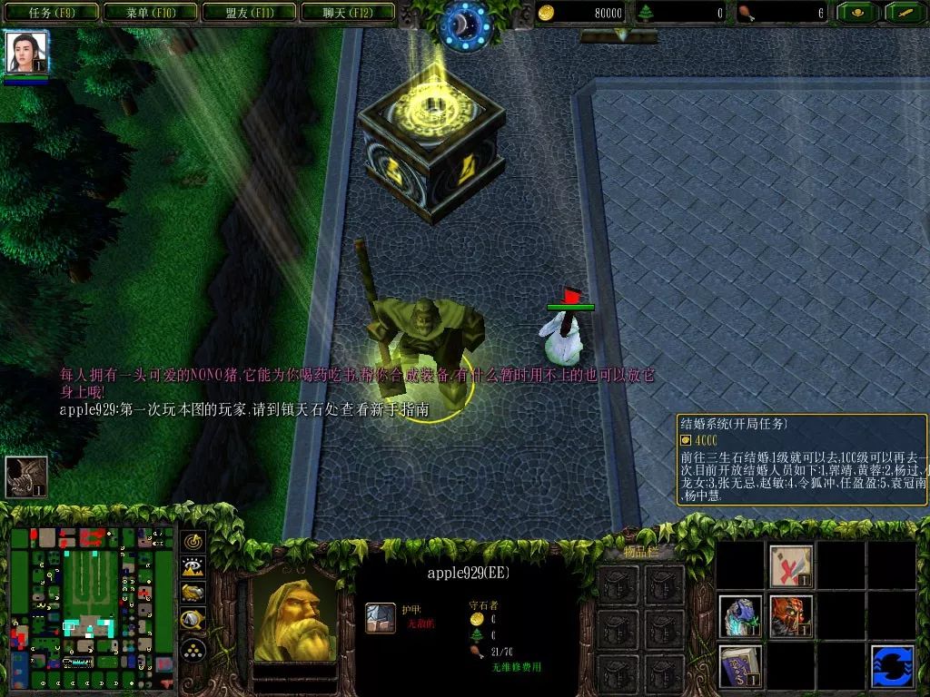 选择好英雄后,小鸡才发现,虽然地图整体布局没有太大变化,但是细节方面却有巨大的提升。首先,地图的整体色彩更改明亮了,没有老图的那种灰蒙蒙的感觉了。其次,英雄的模型和头像也进行了更改,和小说原著的形象更加贴近了,要知道十多年前的RPG地图,基本都用的魔兽自带的模型。
