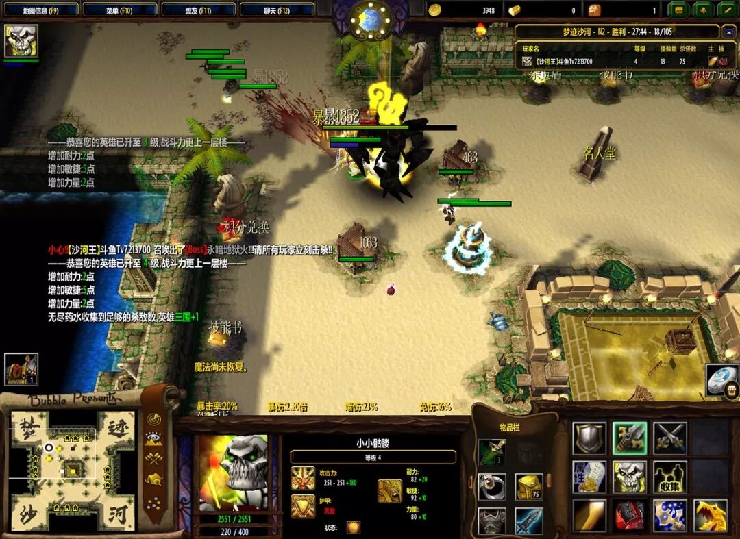 英雄的甲是无效的,开局直接扔掉,节省一个格子,也不会不小心顺手升级甲。英雄和骆驼身上配着小蓝药,并且中后期金砖比较富裕的情况下准备好1-3瓶两个金砖的无敌药水,以免有吸蓝怪导致透明人吃蓝药没蓝放技能(吸蓝怪整整持续一波关卡兵)。