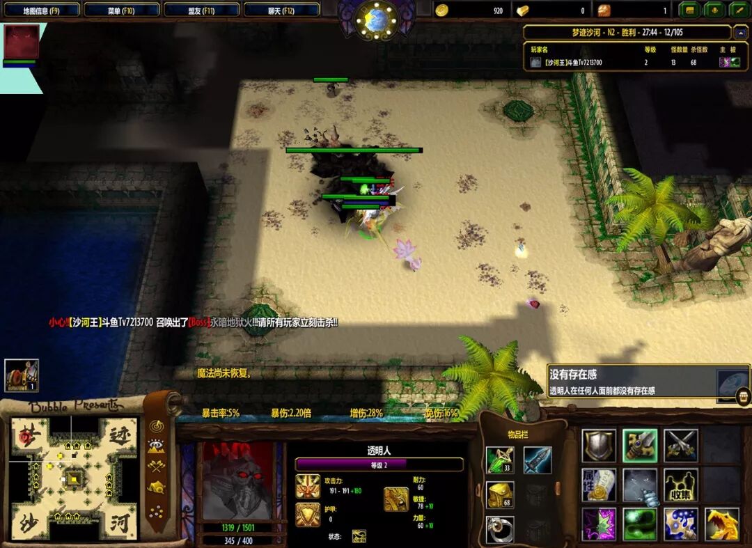 人顾名思义就是透明的意思,系统怪和BOSS是看不到透明人本身的,并且也攻击不了透明人。