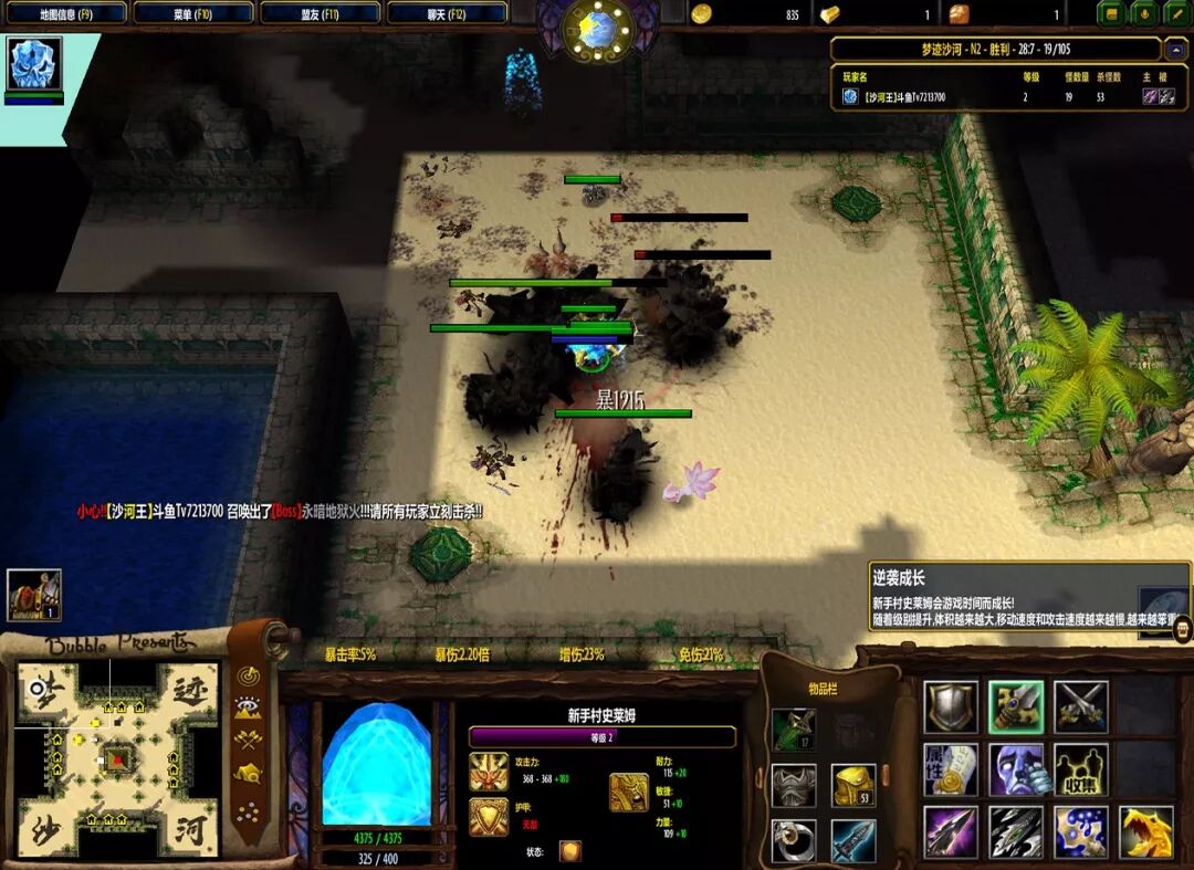 前期因为30点力量属性的原因可以很快速的击杀地狱火和金矿,一般起手打地狱火如果多于1分半就尽量不要打了风险较高,三级的史莱姆就有90点力量再随便配个主动技能对第一条地狱火造成的伤害是巨量的,效率还不错。如果顺利的话3分30秒打完地狱火在4分之前可以考虑打一手金矿,配合咆哮,狂暴,速度神符等等在强大的成长三围下就能平A掉,如果没有这些符3级或4级的史莱姆就需要搭配一点强力技能了。
