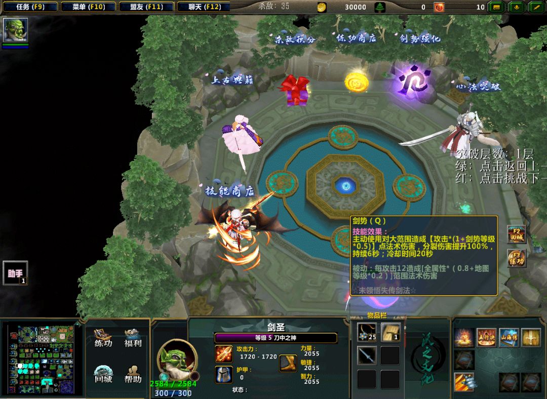 每个英雄出生会自带剑势,“剑势”,可以通过找寻失传武学来转化出不同的技能形态。