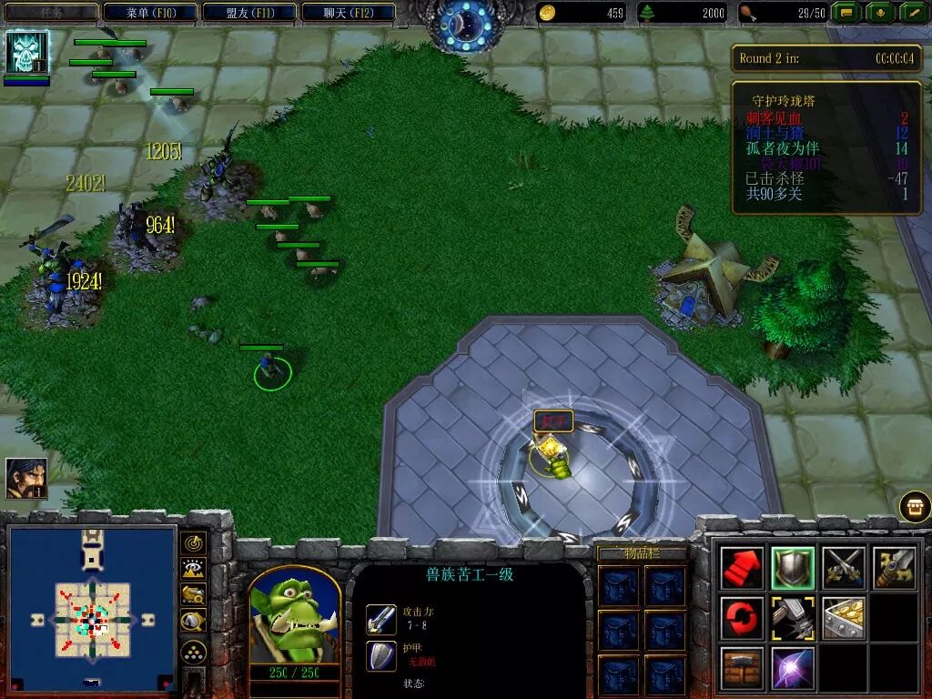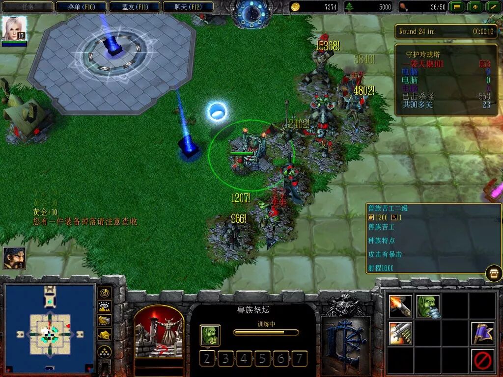 既然小鸡开头说了,这是一张防守与TD相结合的地图,那么防御塔肯定是这张地图的另一大要素。各族的防御塔各不相同,但都是用一级农民将所有的防御塔建好并升级完成后,建造英雄祭坛的路线。祭坛可以升级高级塔的各种属性,并且能够生产二级农民,二级农民可以建造更加强力的防御塔,同样的,价格也更加昂贵。