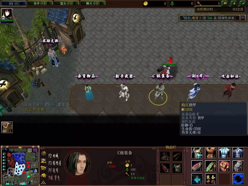 接着就到隔壁的C级装备处买一件衣服吧,同样是注意下衣服的附加属性,而铁甲是每个英雄都通用的,不知道选哪件时就选它吧。