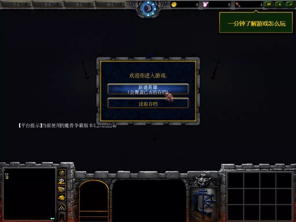 作为一张ORPG地图,游戏开局并没有难度选择,需要选择的是新建英雄还是读取存档,小鸡刚进入这个游戏,当然是选择新建英雄了,但是下次进入的时候,就可以选择读取存档了。