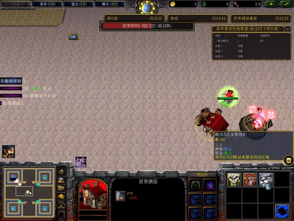 地图中间的世界酒馆会定时刷新英雄,如果有自己需要的,就赶紧去买吧。
