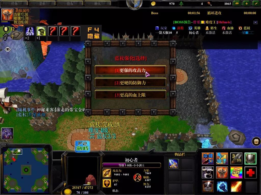 击杀了蓝杖升级BOSS后,我们就可以在三个选项中选择一个强化方向了。蓝杖强化后还可以接着升级,所以记得尽早提升。