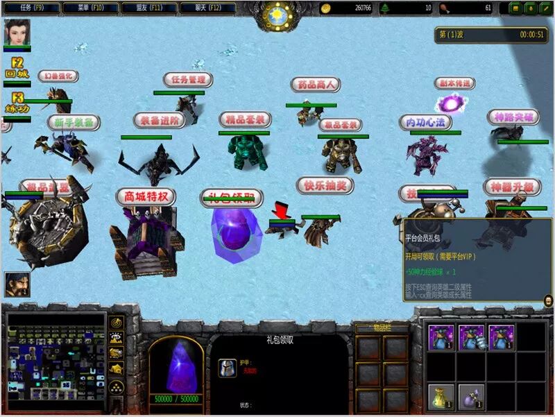 大家记得先去礼包领取NPC处把能领的礼包都领一遍。