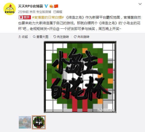 天天RPG新浪微博有《缔造之岛》的抽奖活动,玩过之后喜欢《缔造之岛》的小伙伴可以去微博“天天RPG官博菌”搜索查看来抽奖。